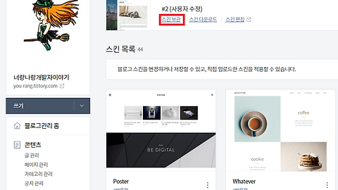 스킨편집 => html 편집을 클릭해 주세요.